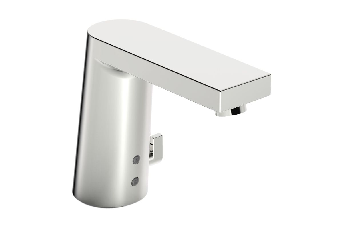 - Бесконтактный смеситель для умывальника с ручкой регулирования температуры воды;