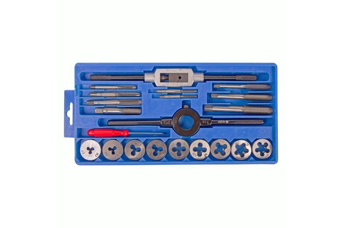 Набор метчиков и плашек предназначен для получения внешней и внутренней резьбы. Все инструменты изготовлены из высококачественной стали, которая отличается высокой контактной прочностью и износостойкостью. Он подойдет для создания резьбы в металлических изделиях, а так же дереве и пластике.