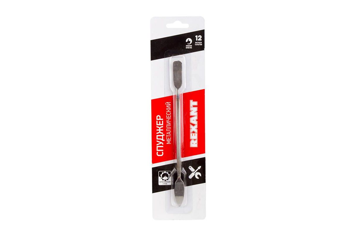 Спуджер металлическая лопатка двухсторонняя широко применяется при демонтажных работах, плоские закругленные края позволяют удобно подцепить различные детали. Данная модель используется самостоятельно без применения дополнительных устройств предназначенная для вскрытия и разборки корпусов мобильных телефонов, ноутбуков, планшетов. Простой и надежный инструмент, который может пригодиться на работе и в быту (подходит для вскрытия клавиатуры ноутбука, вскрытия корпусов практически любого мобильного телефона, позволяет подцепить глубоко расположенную батарейку). Рабочие поверхности увеличенные широкие.