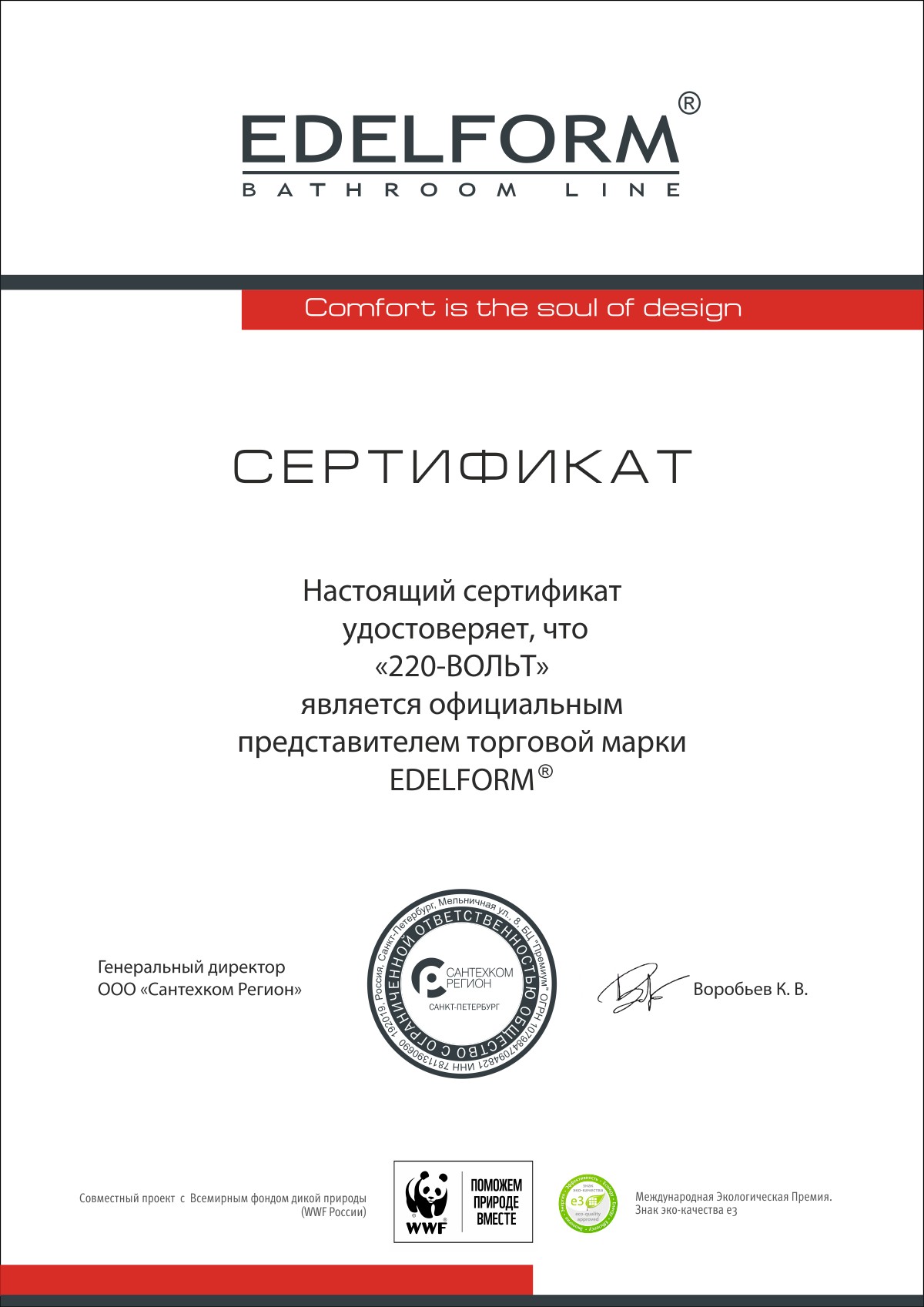 Компания Edelform – один из европейских лидеров в производстве сантехники, в которой стильный дизайн сочетается с удобством и высочайшим качеством. Ее продукция пользуется заслуженной популярностью в странах Европы и в России и получает только положительные отзывы пользователей.